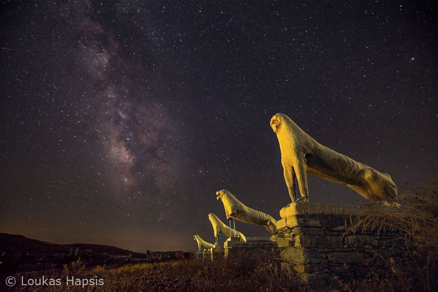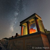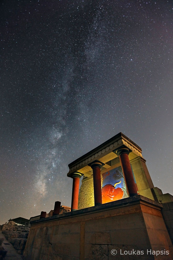 Aστρικές τροχιές, αστερισμοί, νεφελώματα και ο Γαλαξίας με το λεπτό, μυστηριακό φως τους διασχίζουν το νυκτερινό ουρανό και πλαισιώνουν την αρχαία μας κληρονομιά. Από την Ολυμπία ως τη Δήλο και από το Δίον ως την Κνωσό, ο φωτογράφος Λουκάς Χαψής μάς παρασύρει σε μια ονειρική όσο και πρωτότυπη επίσκεψη σε δεκατέσσερις σημαντικές τοποθεσίες, όπου έλαμψε ο ελληνικός πολιτισμός.