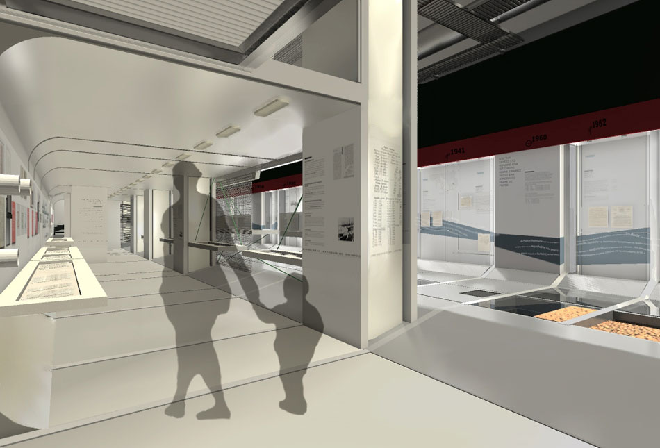 «Η υπερύψωση και η αναδίπλωση των επιφανειών δημιουργούν επίπεδα κυκλοφορίας, ράμπες, εκθετικές επιφάνειες, ώστε να αποδοθεί μέσα στο υφιστάμενο κτίριο το νοητό πλέγμα των θεματικών αξόνων και χρονολογικών τομών του μουσειολογικού σεναρίου», υπογραμμίζει η αρχιτέκτονας-μουσειογράφος, Έλενα Ζερβουδάκη, που μαζί με τη μουσειολόγο, Ελεάννα Βλάχου, εκπόνησαν τη μελέτη .