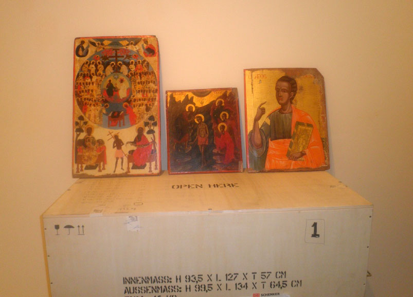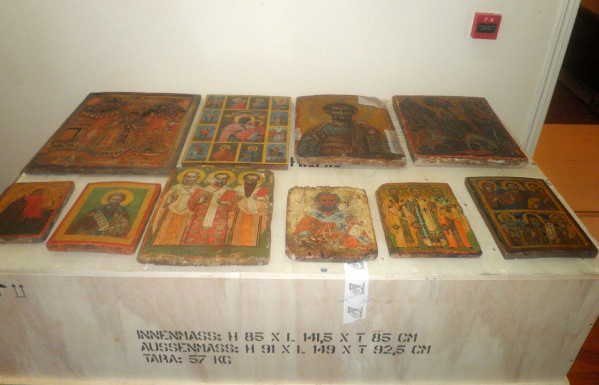 Οι υποθέσεις αυτές οδήγησαν την Ιντερπόλ και τη Γερμανική Αστυνομία στα χνάρια του Αϊντίν Ντικμέν. Τον Οκτώβριο και τον Νοέμβριο του 1997 διενήργησαν έφοδο σε διαμερίσματα που διατηρούσε ο Τούρκος αρχαιοκάπηλος στο Μόναχο. Ο αριθμός των έργων τέχνης που ανευρέθηκαν συγκλονίζει: Πρόκειται για έργα που προέρχονται από περίπου 50 λεηλατημένους ναούς στην τουρκοκρατούμενη Κύπρο, οι οποίοι έχουν πλήρως ταυτιστεί, ενώ δυστυχώς μεγάλο μέρος τους δεν έχει πλήρως ταυτολογηθεί, λόγω ελλιπών αρχείων. Από τα γνωστά έργα τέχνης ξεχωρίζουν τα τεμάχια ψηφιδωτών του 6ου αιώνα από την Παναγία Κανακαριά, τα σπαράγματα τοιχογραφιών από την Παναγία Αψινθιώτισσα στο Συγχαρί, όπως το κεφάλι του αγίου Ιγνατίου, τα σπαράγματα τοιχογραφιών από το ναό της Παναγίας Περγαμηνιώτισσας στην Ακανθού, που χρονολογούνται στον 12ο αιώνα, τα σπαράγματα τοιχογραφιών από το ναό Αγίας Σολομονής του 9ου αιώνα και τα σπαράγματα τοιχογραφιών από το ναό του Αντιφωνητή (περ. 1200 και τέλη 15ου αι.), καθώς επίσης ένας μεγάλος αριθμός εικόνων και παλαιά χειρόγραφα.