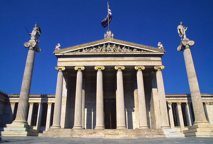 Απώλεια τμημάτων του ζωγραφικού διακόσμου, αποσύνθεση και διάβρωση του ζωγραφικού στρώματος και νεότερες αισθητικές επεμβάσεις είναι μερικές από τις σημαντικότερες φθορές στον εξωτερικό ζωγραφικό διάκοσμο ενός τοπόσημου των Αθηνών, του κτιρίου της Ακαδημίας.