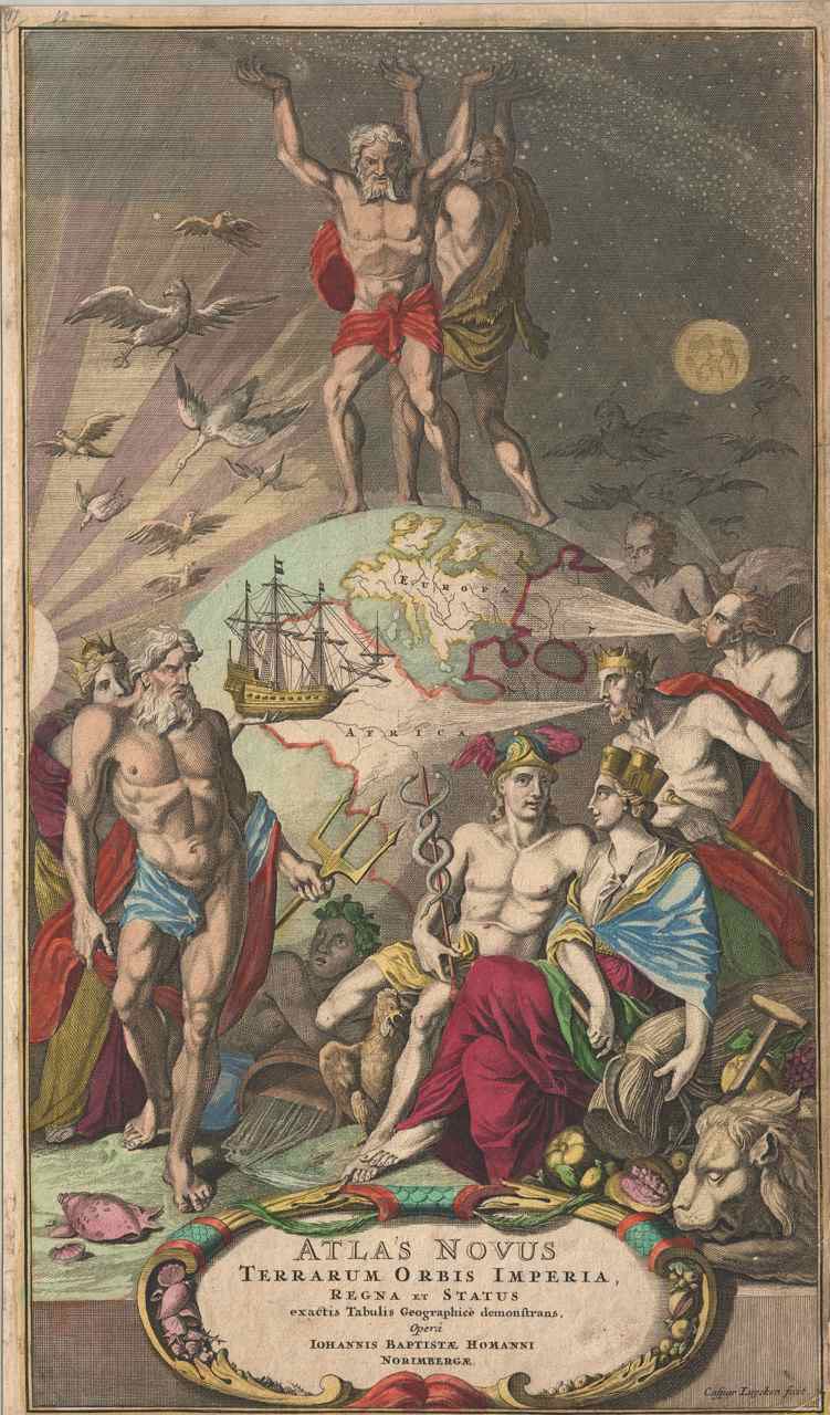 Προμετωπίδες και σελίδες τίτλου από μνημειώδεις χαρτογραφικές εκδόσεις-σταθμούς στην ιστορία της χαρτογραφίας. Πρόκειται για εντυπωσιακές αλληγορικές συνθέσεις που διακοσμούσαν τη δεύτερη και την τρίτη σελίδα κάθε άτλαντα και προσκαλούσαν τον αναγνώστη σε γοητευτικές περιπλανήσεις.