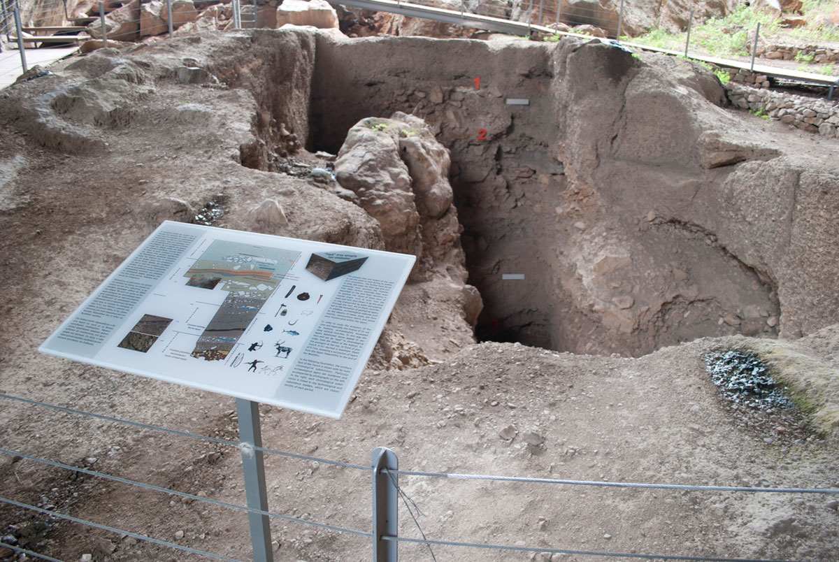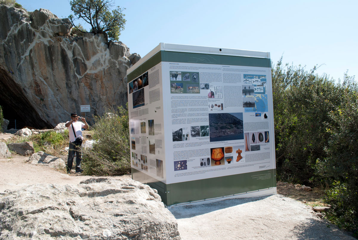 Στις σημαντικότερες εργασίες που πραγματοποιήθηκαν συγκαταλέγονται η διαμόρφωση μονοπατιού πρόσβασης από την παράλια ζώνη έως την είσοδο του σπηλαίου (εικ. 6), το οποίο συνεχίζεται στο εσωτερικό του ως διάδρομος περιήγησης κατασκευασμένος από μεταλλική βάση και ξύλινο δάπεδο (εικ. 7), εργασίες σταθεροποίησης των πρανών της εισόδου, πλήρωση των διαβρωμένων ανασκαφικών τομών, στερέωση και ανάδειξη μίας αντιπροσωπευτικής τομής που διασώζει τη στρωματογραφία του σπηλαίου (εικ. 8, 9), τοποθέτηση ενημερωτικών πινακίδων σε επιλεγμένα σημεία εσωτερικά και εξωτερικά αυτού. Τέλος, καθαρίστηκε από τη βλάστηση και οριοθετήθηκε το ανασκαμμένο τμήμα του υπαίθριου νεολιθικού οικισμού. Εκτός του σπηλαίου εγκαταστάθηκε οικίσκος για τη φύλαξη του σπηλαιολογικού υλικού, ο οποίος επενδύθηκε με ενημερωτικό υλικό (εικ. 10), ενώ παράλληλα εκτυπώθηκε τρίπτυχο δίγλωσσο ενημερωτικό φυλλάδιο και φυλλάδιο στο σύστημα Braille με τις συνοπτικές πληροφορίες για τη θέση.