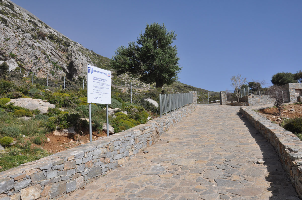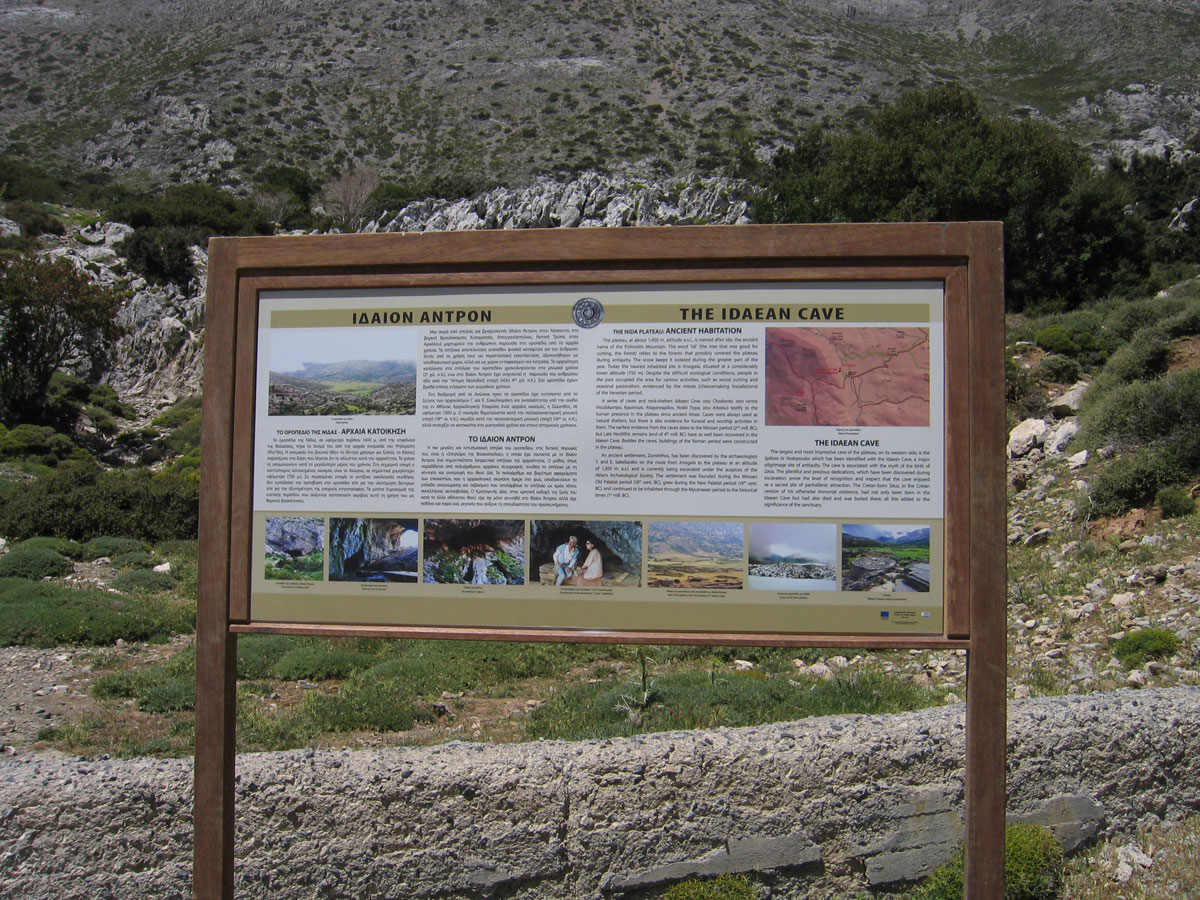 Το έργο «Αξιοποίηση και Ανάδειξη του Σπηλαίου ‘’Ιδαίον Άντρον’’ και του Περιβάλλοντος Χώρου» υλοποιήθηκε στο πλαίσιο του «Επιχειρησιακού Προγράμματος Κρήτης και Νήσων Αιγαίου 2007-2013» (εικ. 14). Σκοπός του ήταν η προστασία, η ανάδειξη και η αξιοποίηση του σπηλαίου ως φυσικού και πολιτιστικού μνημείου. Υλοποιήθηκαν νέα έργα υποδομής και αντικατάσταση παλαιότερων με στόχο τη διαμόρφωση τουριστικής διαδρομής στο εσωτερικό του σπηλαίου (εικ. 15), την ανάπλαση των ανασκαμμένων χώρων, τη συντήρηση των σιδηροτροχιών που είχαν εγκατασταθεί κατά τη διάρκεια της ανασκαφικής έρευνας, καθώς και τη διαμόρφωση του περιβάλλοντος χώρου με τις ελάχιστες δυνατές παρεμβάσεις στο φυσικό περιβάλλον (εικ. 16, 17) και την ενημέρωση του κοινού με το κατάλληλο εποπτικό υλικό (εικ. 18, 19).