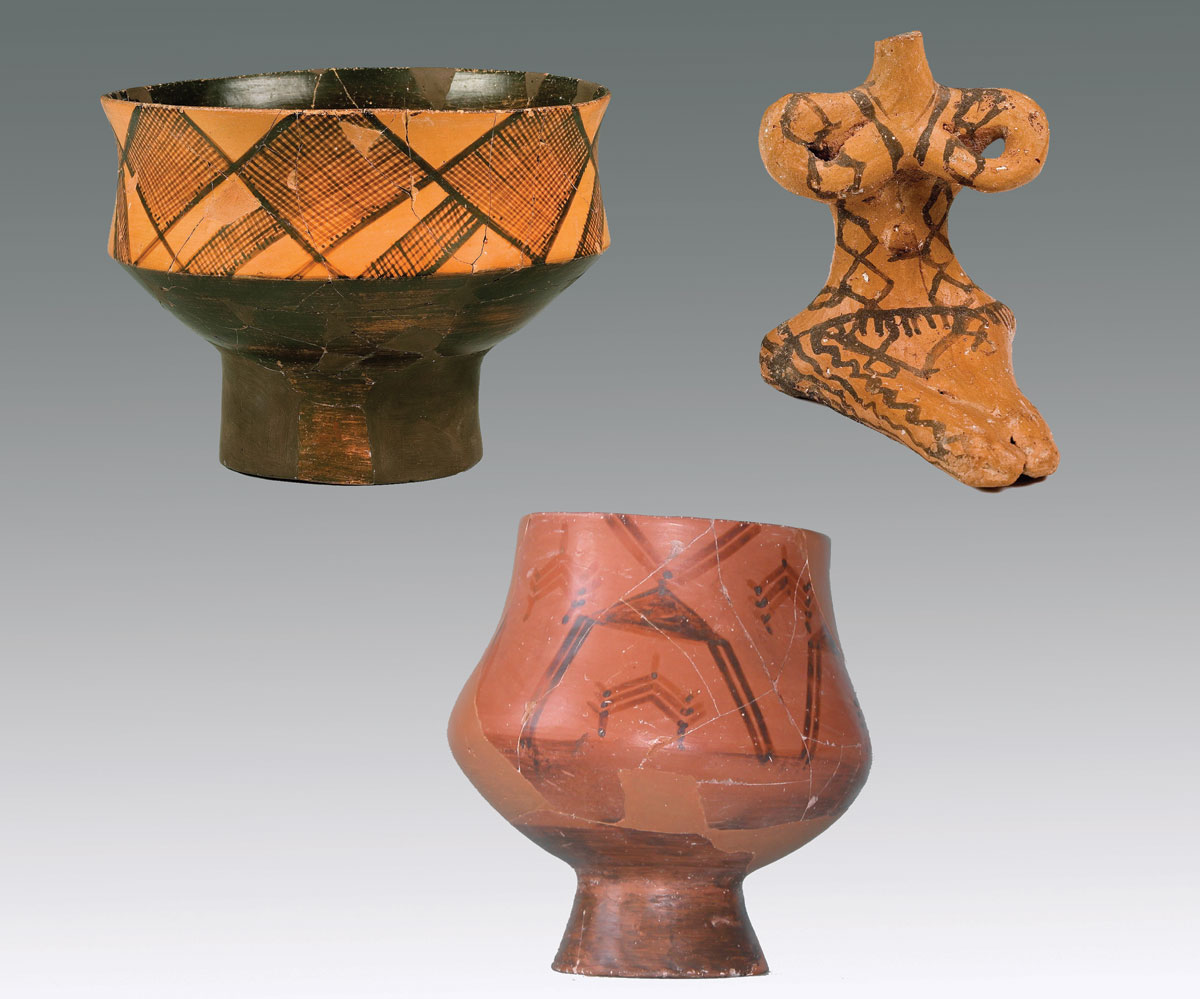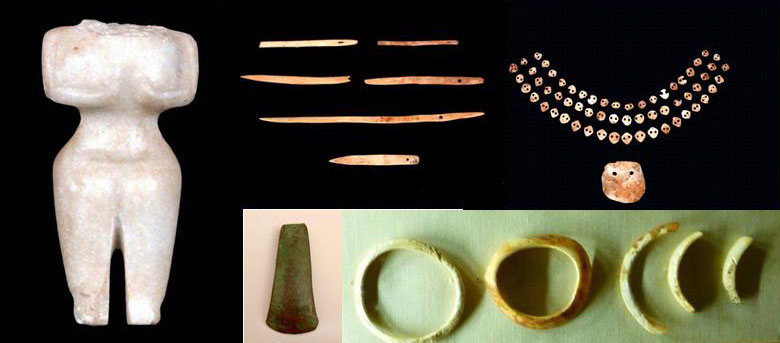 Μία από τις πλέον εντυπωσιακές πρακτικές δεξιότητας των Νεολιθικών κατοίκων του σπηλαίου είναι η κατασκευή αγγείων και ειδωλίων από ψημένο πηλό (εικ. 3). Τα αγγεία ήταν κυρίως μονόχρωμα οικιακής χρήσης, αλλά υπήρχαν και σκεύη κατασκευασμένα από εξειδικευμένους αγγειοπλάστες, τα οποία έφεραν περίτεχνη πολύχρωμη διακόσμηση διαμορφωμένη με ποικίλους συνδυασμούς επιχρισμάτων και τεχνικές όπτησης. Όπως οι προκάτοχοί τους, έτσι και οι Νεολιθικοί κάτοικοι του σπηλαίου φρόντιζαν για τον καλλωπισμό τους φτιάχνοντας κοσμήματα από απλά φυσικά υλικά, κυρίως θαλάσσια κοχύλια (Εικ. 4).