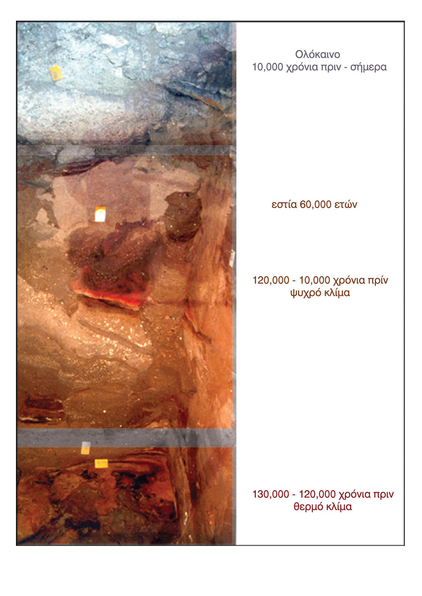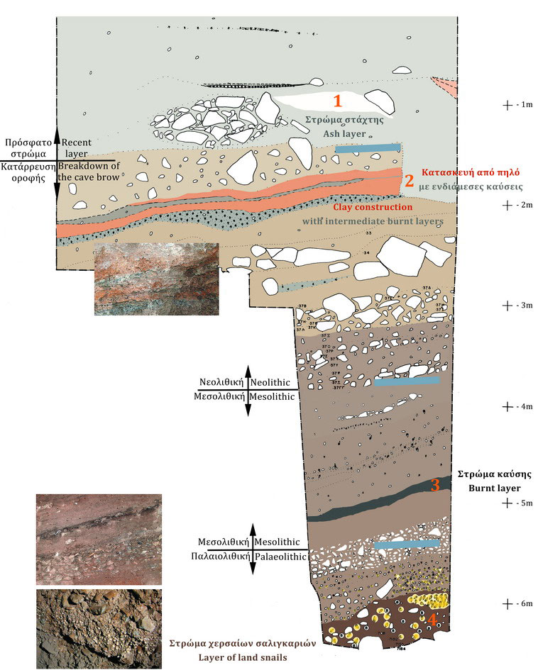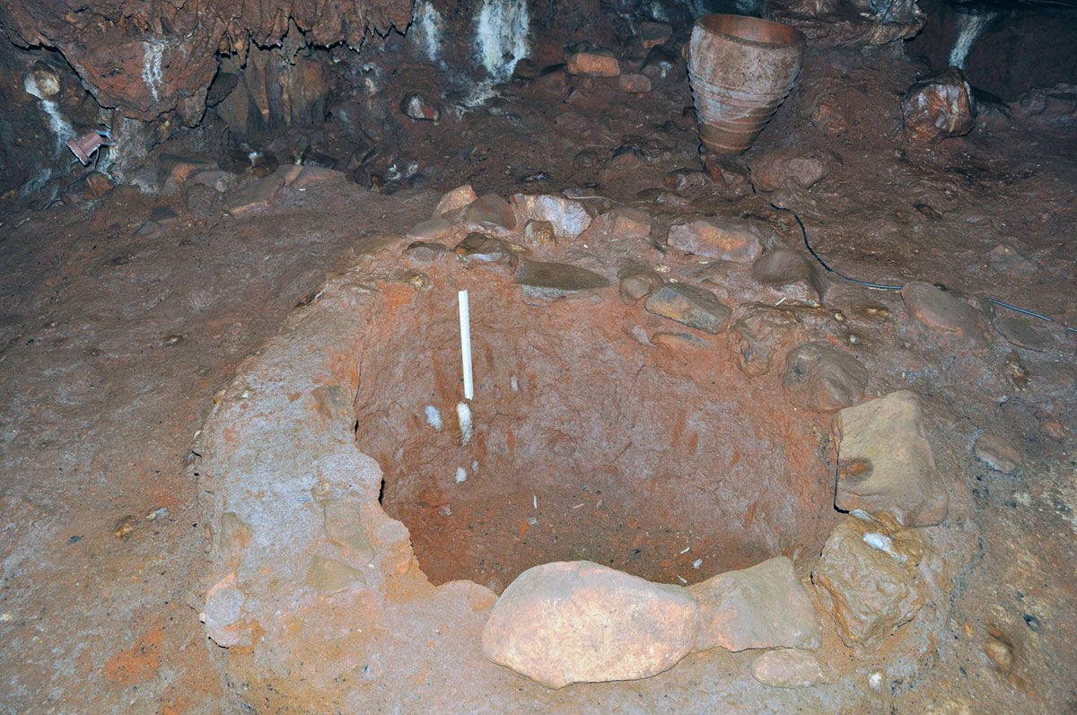Στην ύστερη φάση της Νεολιθικής ευρύς χώρος κοντά στην είσοδο χρησιμοποιήθηκε συστηματικά για καθημερινές οικιακές εργασίες και αποθήκευση τροφίμων, όπως τεκμαίρεται από τη συγκέντρωση πίθων και την κατασκευή αποθηκευτικών λάκκων (εικ. 26), δαπέδων χρήσης και εστιών στο χώρο αυτό. Εκτός της κεραμικής στο σπήλαιο βρέθηκαν λίθινα και οστέινα εργαλεία, όπλα, κοσμήματα, οργανικά κατάλοιπα, οστά εξημερωμένων και άγριων ζώων καθώς και ποικιλία οστρέων και ψαριών.
