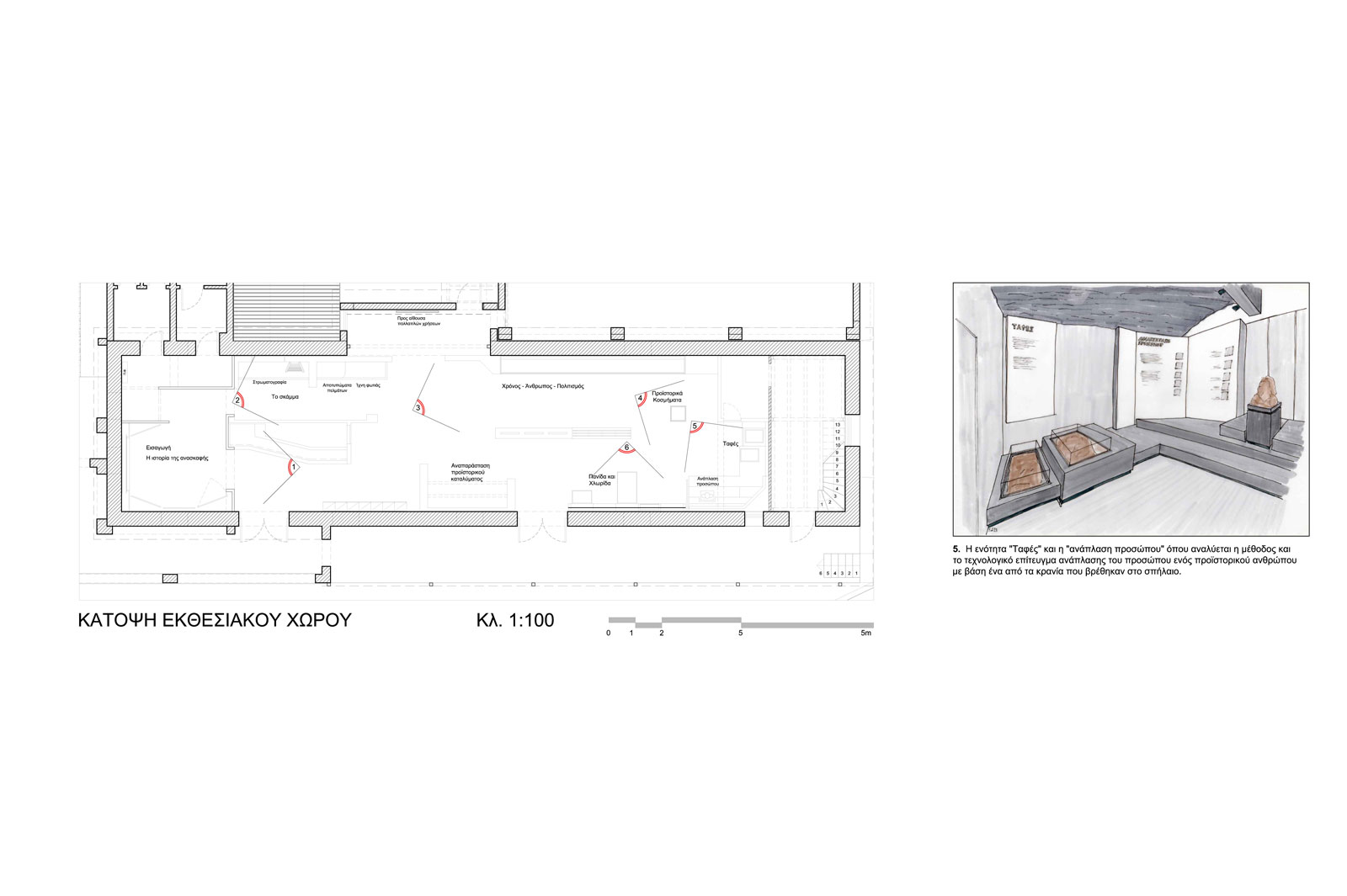 Η έκθεση θα πλαισιώνεται από πλούσιο εκπαιδευτικό και ενημερωτικό υλικό που θα στοχεύει στη διαμόρφωση της πληρέστερης δυνατής εικόνας για τους τρόπους διαβίωσης των ανθρώπων και των κοινωνιών τους στις εκάστοτε προϊστορικές περιόδους. Στο κτήριο προβλέπεται μικρή αίθουσα προβολών εκπαιδευτικών ταινιών καθώς και χώρος γνωριμίας με τις πρώτες ύλες που χρησιμοποιούσαν οι προϊστορικοί κάτοικοι του σπηλαίου, όπως πηλός, πυριτόλιθος, κέρατα, όστρεα, δέρμα κ.λπ.