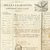 Το διαβατήριο αυτό, μαζί με άλλα 43 ιστορικά ταξιδιωτικά έγγραφα (διαβατήρια, άδειες και πάσα) από τις συλλογές του Ελληνικού Λογοτεχνικού και Ιστορικού Αρχείου παρουσιάζονται σε έκθεση στο Μορφωτικό Ίδρυμα Εθνικής Τραπέζης (Αμερικής 13), στην Αθήνα, η οποία θα διαρκέσει μέχρι την 1η Μαρτίου 2014.