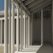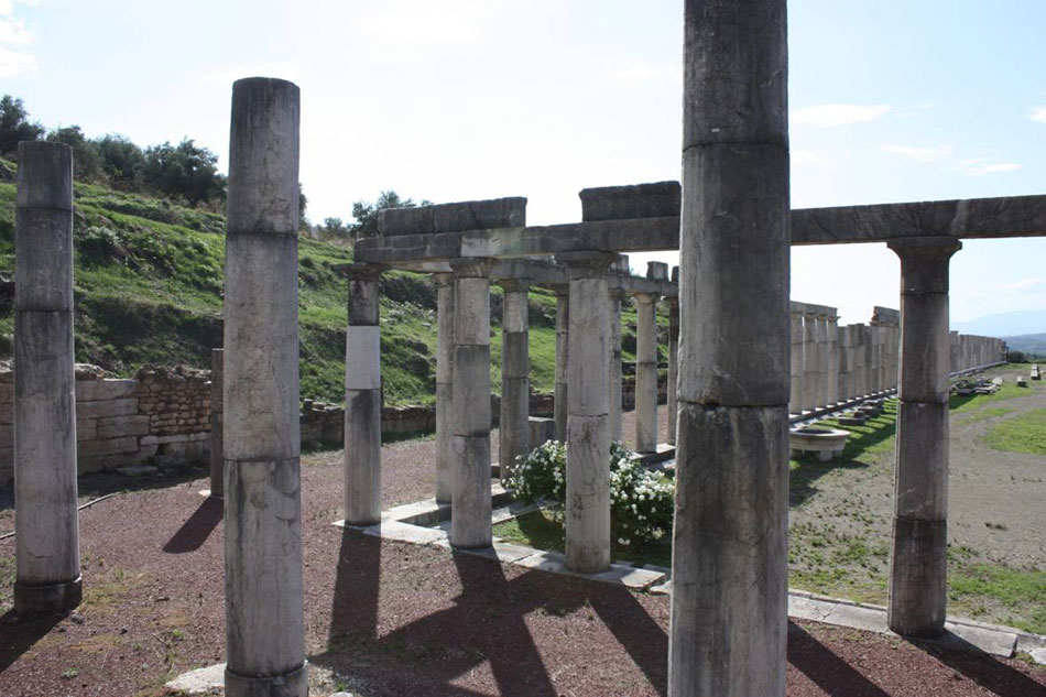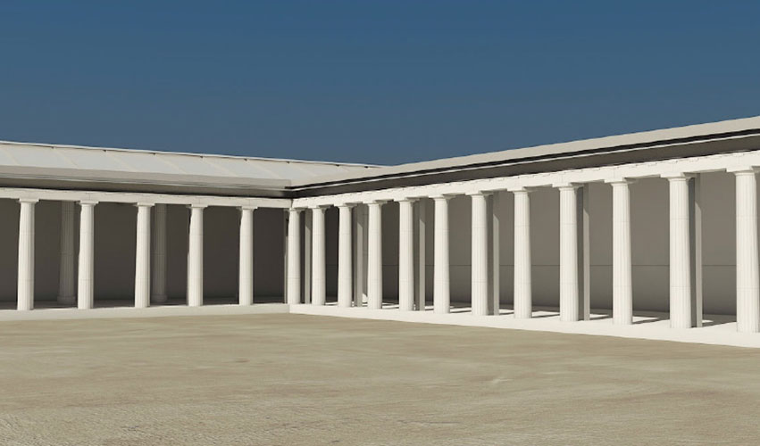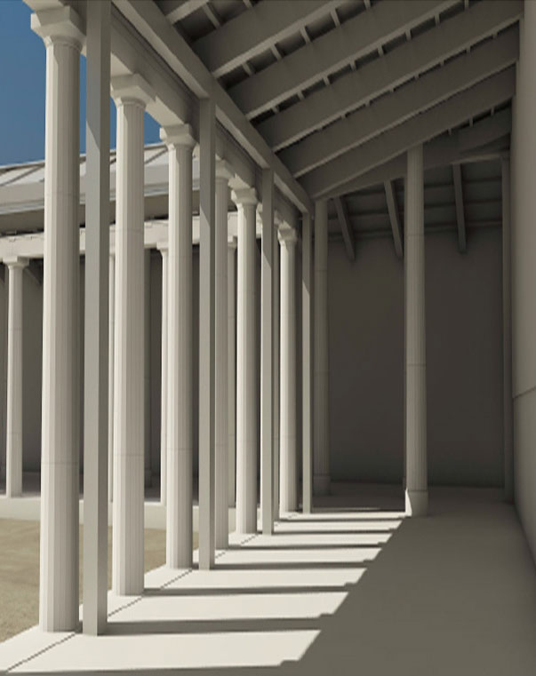Στόχος η δημιουργία ενός πολυλειτουργικού χώρου, που θα παρέχει προστασία στους θεατές, θα στεγάζει μικρή έκθεση αρχιτεκτονικών μελών, ενώ θα αποκαθιστά τις αρχικές συνθήκες φωτός, όγκου και χαρακτήρα του μνημείου ως ημιυπαίθριου χώρου, που ήταν οι στοές.