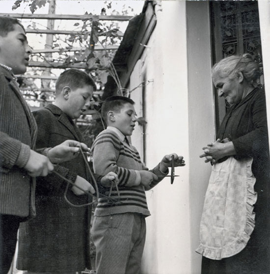 Φεύγετε να φεύγουμε, έρχετ’ ο τουρλόπαπας / Με την αγιαστούρα του και με τη βρεχτούρα του.