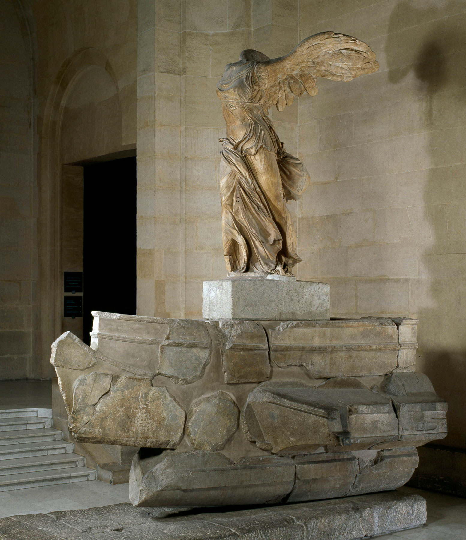 Το άγαλμα, που ανακαλύφθηκε το 1863 στη Σαμοθράκη, χρονολογείται από το 2ο αιώνα π.Χ. και αναπαριστά τη Νίκη, θεά που φέρνει τη νίκη. Έφτασε στο Λούβρο ανάμεσα στο 1880 και το 1884 και έχει το πόδι πάνω σε μία βάση που μοιάζει με πλώρη πάνω σε βάθρο.