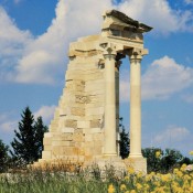 – Το Θέατρο: είναι κτισμένο στο νότιο άκρο του λόφου. Κτίστηκε αρχικά το 2ο αι. π.Χ., ενώ κατά το 2ο αι. μ.Χ. επεκτάθηκε και πήρε τη σημερινή του μορφή. Γύρω στα τέλη του 2ου-αρχές 3ου αι. έγιναν κάποιες μετατροπές, όπως η τοποθέτηση μεταλλικού κιγκλιδώματος, για να μπορεί να δέχεται ένα δημοφιλές θέαμα της εποχής, τις θηριομαχίες. Στο κοίλο του θεάτρου βρίσκονταν οι κερκίδες, που χωρούσαν 3.500 θεατές. Το οικοδόμημα της σκηνής, που υψωνόταν πίσω από το προσκήνιο όπου γίνονταν οι παραστάσεις, έφρασσε την ημικυκλική ορχήστρα προς την πλευρά της θάλασσας. Σήμερα σώζονται μόνο τα θεμέλια της σκηνής. Μετά την αναστήλωσή του, το θέατρο χρησιμοποιείται σήμερα για πολιτιστικές εκδηλώσεις.