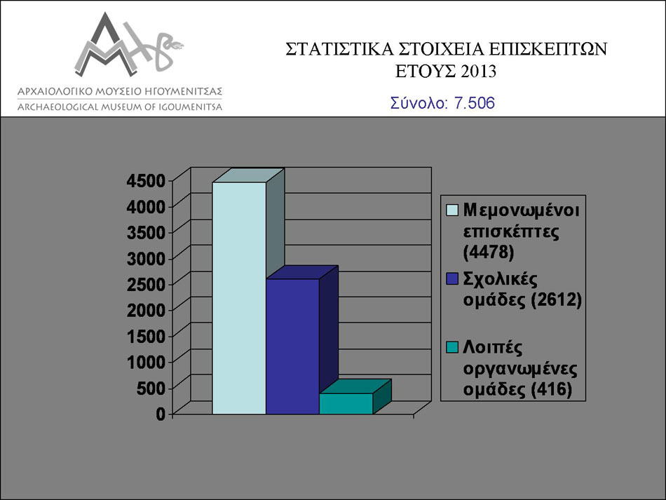 Το τέλος κάθε χρόνου σηματοδοτεί για τον καθένα μας την αρχή μίας περιόδου ενδοσκόπησης και παράλληλα απολογισμού της χρονιάς που πέρασε: τι υποσχέσεις δώσαμε, τι στόχους θέσαμε, τι αντίκτυπο είχαν οι δράσεις μας, τι τελικά καταφέραμε να υλοποιήσουμε. Για το Αρχαιολογικό Μουσείο Ηγουμενίτσας το 2013 ήταν μία εξαιρετικά δημιουργική και παραγωγική χρονιά, που τελείωσε με το Μουσείο να έχει πετύχει τους περισσότερους στόχους του και να έχει ξεπεράσει σε πολλές περιπτώσεις ακόμα και τις πιο φιλόδοξες προσδοκίες του.