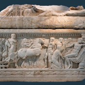 «Το μάρμαρο προήλθε από την Προκόννησο, νησί στην Προποντίδα, που αποκαλείται και νήσος του Μαρμαρά για τα θαυμάσια μάρμαρά που προέρχονταν από το λατομείο της, αποτελώντας πρώτη ύλη για τη διακόσμηση και την κατασκευή αρχιτεκτονικών μελών πληθώρας μνημείων της αρχαιότητας, όπως του τάφου του Μαυσώλου στην Αλικαρνασσό», αναφέρεται στο κείμενο της παρουσίασης του εκθέματος.