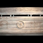 »Το κάλυμμα έχει μορφή δίρριχτης στέγης με αετώματα και 4 συμπαγή ακρωτήρια στις γωνίες του. Το κέντρο της μακράς πλευράς του κοσμείται από ανισοσκελή σταυρό σε δίσκο. Το μοτίβο αυτό αποτελεί συνηθισμένο διακοσμητικό θέμα της παλαιοχριστιανικής περιόδου, κυρίως του 5ου αι. μ.Χ.