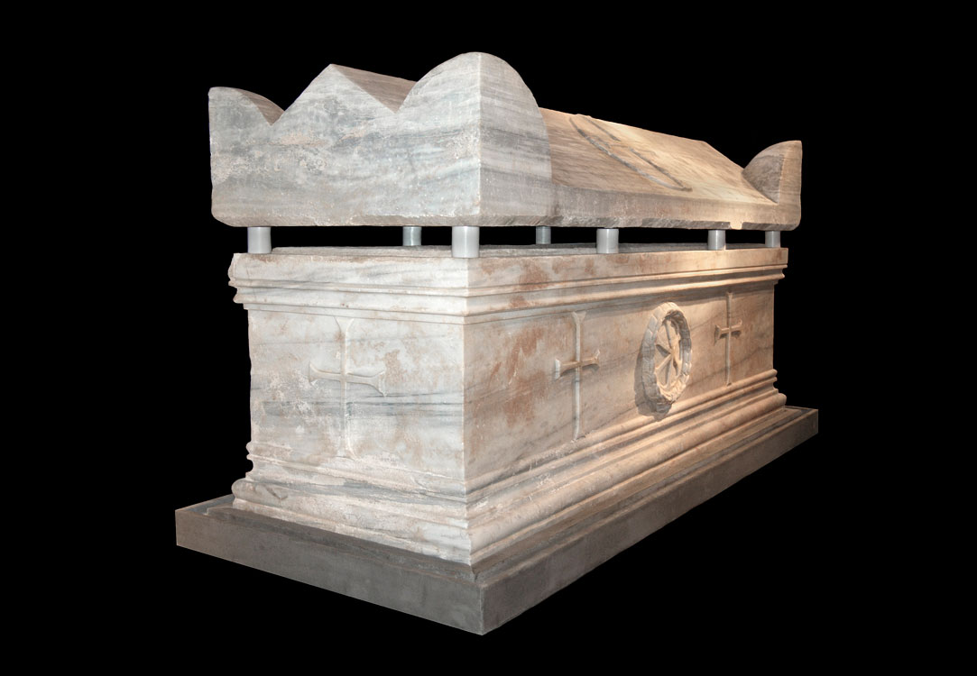 «Πρόκειται για τη μοναδική εισηγμένη σαρκοφάγο αυτού του τύπου που έχει βρεθεί έως τώρα στην Ελλάδα και οπωσδήποτε περιείχε τα λείψανα επιφανούς νεκρού. Από τα οστά δεν βρέθηκαν αυτά του κρανίου, γεγονός που οδήγησε στην υπόθεση πως ανήκαν σε έναν ακέφαλο μάρτυρα.