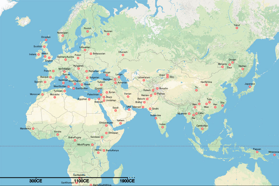 Οι ερευνητές του πανεπιστημίου της Οξφόρδης (Τμήμα Στατιστικής) και του University College του Λονδίνου (Ινστιτούτο Γενετικής), καθώς και του Ινστιτούτου Εξελικτικής Ανθρωπολογίας Μαξ Πλανκ της Λειψίας, με επικεφαλής τον δρα Γκάρετ Χέλενταλ, που έκαναν τη σχετική δημοσίευση στο περιοδικό Science, σύμφωνα με τους New York Times, τη βρετανική Independent και το Nature, βάσισαν τον «χάρτη» τους στην πλήρη συγκριτική ανάλυση του DNA 1.490 ανθρώπων από 95 πληθυσμούς από όλο τον κόσμο.