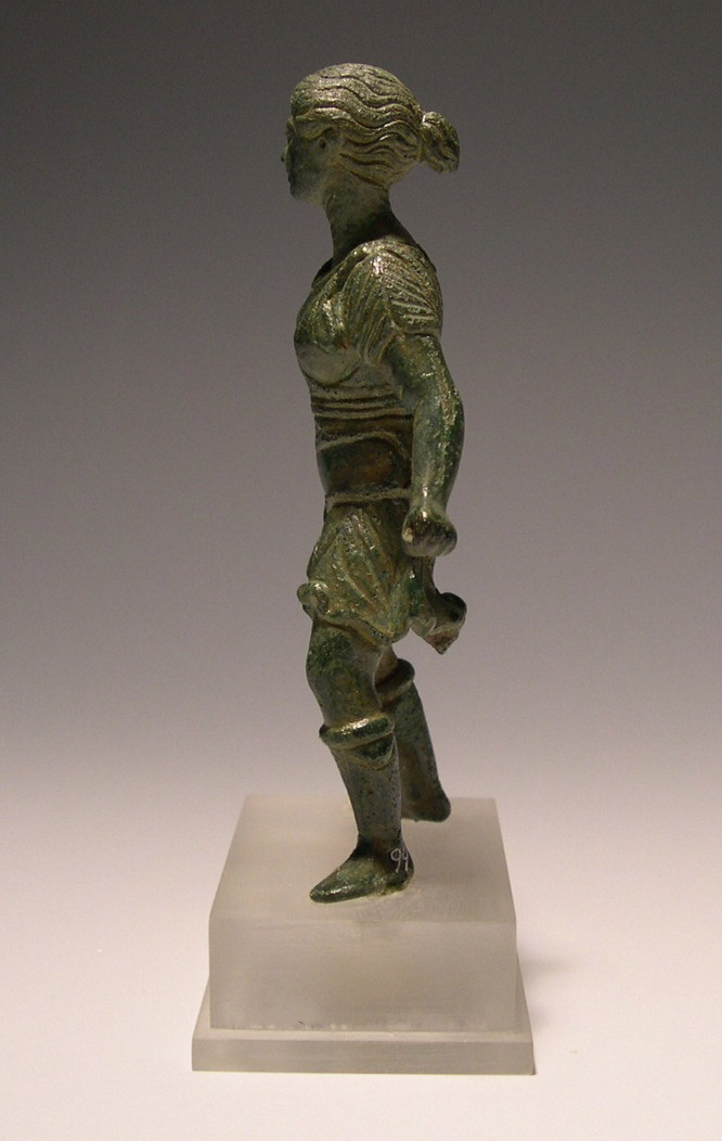 Το αγαλμάτιο βρέθηκε στα Πιστιανά του νομού Άρτας κατά τη διάρκεια εργασιών για τη διάνοιξη δρόμου, έχει ύψος 0,16 μ. και χρονολογείται στην ελληνιστική περίοδο. Εικονίζει τη θεά με κοντό χιτώνα και δορά (θώρακας από δέρμα) που περιβάλλει χιαστί το σώμα. Στο αριστερό χέρι θα κρατούσε τόξο και στο δεξί, του οποίου λείπει το άκρο, πιθανότερα πυρσό.