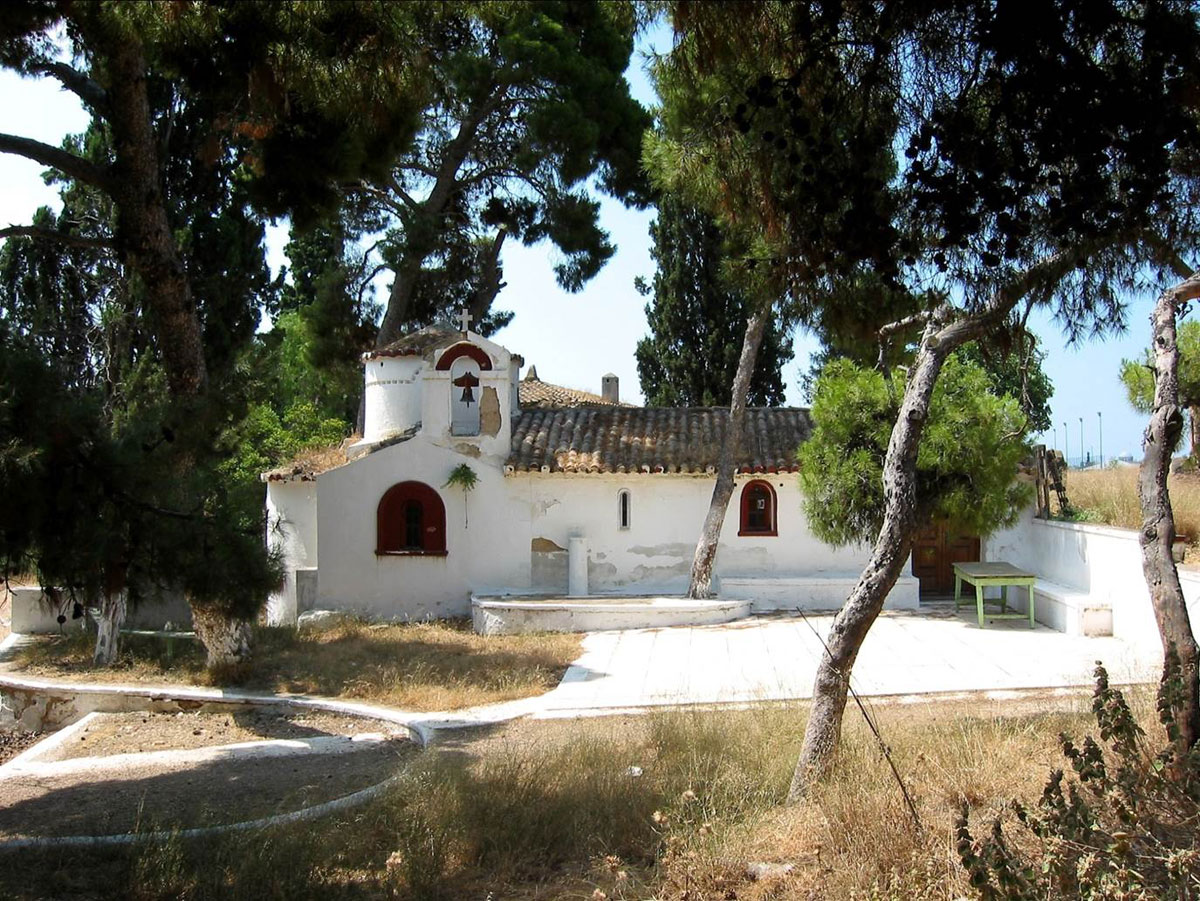 »Συνεχίζοντας την περιήγησή μας θα σταθούμε και στα νεότερα μνημεία, βασιλικές και ναΐσκους που κατά διαστήματα χρόνου και τόπου ιδρύθηκαν στη συγκεκριμένη ζώνη της δυτικής Αττικής. Πρόκειται για το ναό του Αγίου Γεωργίου στο Δέλτα Φαλήρου, ο οποίος όπως παρατηρώ τελευταία θα “πνιγεί” αδικαιολόγητα κατά τη γνώμη μου από την κατασκευή κάποιου κλειστού γηπέδου, για τη βασιλική του Αλιμούντος επί του λόφου του Θεσμοφορίου, από την οποία λίγα μόνο στοιχεία σώζονται, για τη βασιλική που η θεμελίωσή της διατηρείται στο προαύλιο του ιερού ναού της Ζωοδόχου Πηγής στο Καλαμάκι, για το ναό των Εισοδίων της Θεοτόκου εντός του κτήματος Γερουλάνου που τελευταία γίνεται μεγάλη φασαρία καθώς η νυν ιδιοκτήτρια εταιρεία ΜΑΚΡΟ Α.Ε. δεν επιτρέπει σε κανένα την είσοδο αν και πρόκειται για κηρυγμένο μνημείο (εικ. 12), για τον ναΐσκο των Αγίων Κοσμά και Δαμιανού στο ομώνυμο ακρωτήρι (εικ. 13) και τέλος για τη βασιλική της Γλυφάδας, έξω από την περίφραξη των Αστεριών».