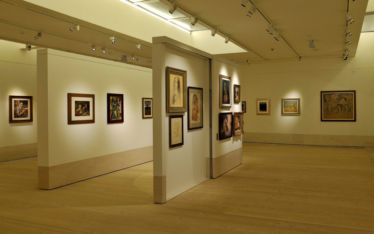 Στην ελληνική συλλογή περιλαμβάνονται, μεταξύ άλλων, έργα των ζωγράφων της Σχολής του Μονάχου, νεωτερικές συνθέσεις του Περικλή Πανταζή, δημιουργίες καλλιτεχνών που εικονογραφούν το πέρασμα προς τον νέο αιώνα και τα διδάγματα του μοντερνισμού, που συμπαρατίθενται με ακαδημαϊκές διατυπώσεις, έως τις κατακτήσεις της Γενιάς του ’30 και τη μεταπολεμική ζωγραφική, με τα ονόματα των μεγάλων δασκάλων του 20ού αιώνα, Παρθένη, Μαλέα, Παπαλουκά, και τους νεότερους Τσαρούχη, Γκίκα, Μόραλη.