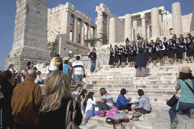 Ο κ. Παναγιωτόπουλος συζήτησε με τους νεαρούς σπουδαστές και τον Καλλιτεχνικό Διευθυντή της Εθνικής Λυρικής Σκηνής κ. Μύρωνα Μιχαηλίδη, που οργάνωσε, εξάλλου, και τη συναυλία των Προπυλαίων της Ακρόπολης. Οι αρμονικές φωνές της Παιδικής Χορωδίας της ΕΛΣ υπό τη διεύθυνση της Μάτας Κατσούλη αντήχησαν στον Ιερό Βράχο, τραγουδώντας συνθέσεις Μότσαρτ, Μπρίτεν και Χατζιδάκι, μαγνητίζοντας τους επισκέπτες, που στάθηκαν να την ακούσουν, καθώς από χθες, διαθέτουν πλέον πολύ περισσότερο χρόνο για να περιηγηθούν το μνημείο.