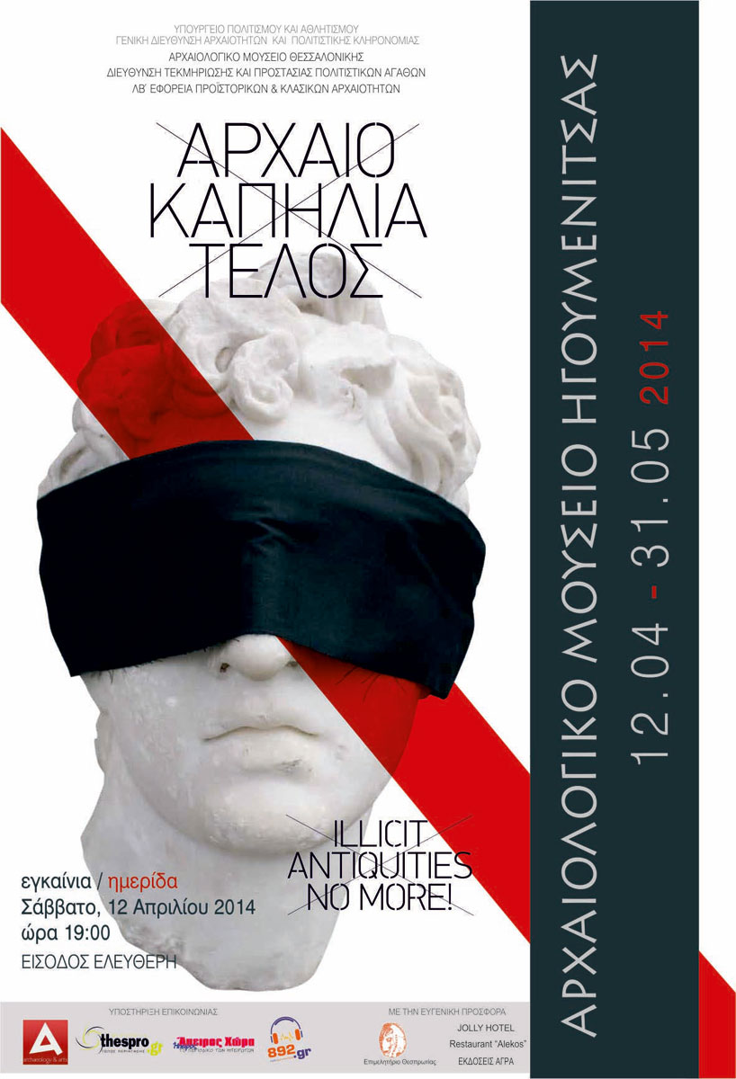 Από το Σάββατο 12 Απριλίου έως και το Σάββατο 31 Μαΐου 2014, η ΛΒ΄ Εφορεία Προϊστορικών και Κλασικών Αρχαιοτήτων θα φιλοξενεί στο Αρχαιολογικό Μουσείο Ηγουμενίτσας την έκθεση εποπτικού υλικού και αρχαιολογικών εκθεμάτων με τίτλο «Αρχαιοκαπηλία Τέλος».