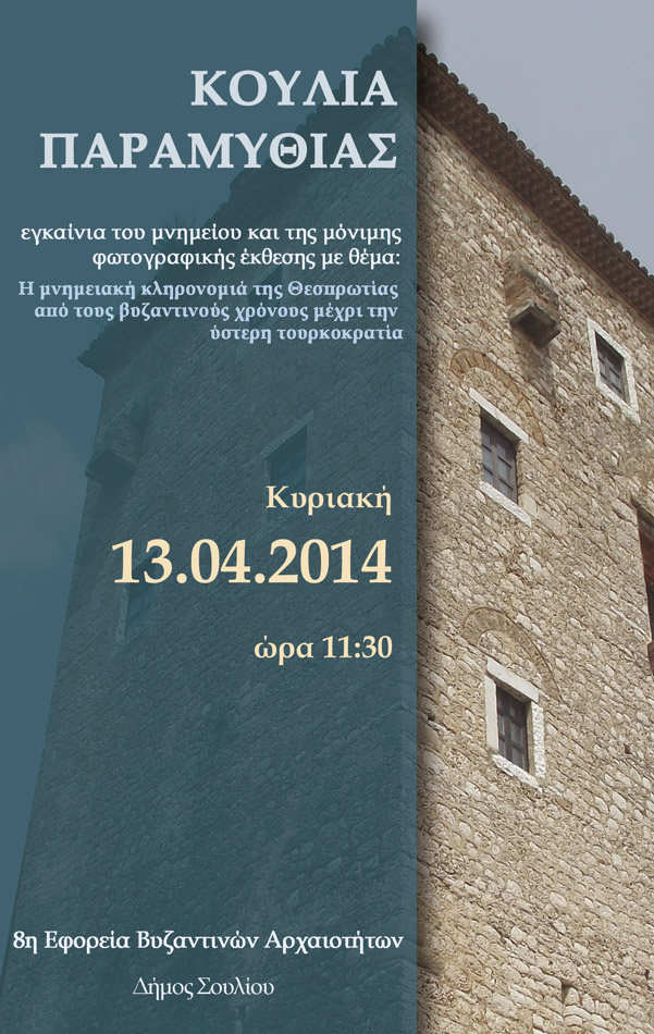 Τα εγκαίνια της φωτογραφικής έκθεσης στην Κούλια Παραμυθιάς, γνωστή ως Κούλια των Μπονολάτων, ένα από τα καλύτερα σωζόμενα παραδείγματα οχυρωματικής κατοικίας στη Βορειοδυτική Ελλάδα, που χρονολογείται στο β’ μισό του 18ου-αρχές 19ου αιώνα, θα πραγματοποιηθούν την Κυριακή 13 Απριλίου και ώρα 11:30.