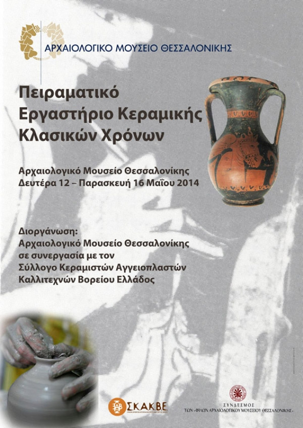 «Πειραματικό Εργαστήριο Κεραμικής Κλασικών Χρόνων» διοργανώνει το Αρχαιολογικό Μουσείο Θεσσαλονίκης, σε συνεργασία με τον Σύλλογο Κεραμιστών Αγγειοπλαστών Καλλιτεχνών Βορείου Ελλάδος. Το Εργαστήριο θα πραγματοποιηθεί στο Αρχαιολογικό Μουσείο Θεσσαλονίκης από 12 έως 16 Μαΐου 2014 και απευθύνεται σε προπτυχιακούς και μεταπτυχιακούς φοιτητές Αρχαιολογίας, Μουσειολογίας και Συντήρησης.