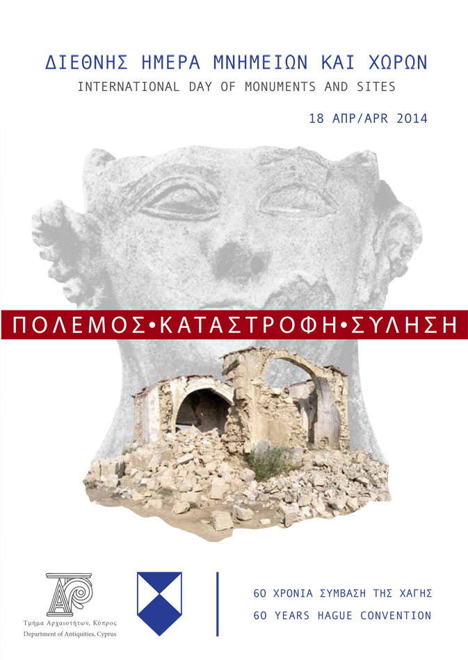 «Η κληρονομιά της μνήμης – 60 χρόνια Σύμβαση της Χάγης» είναι η θεματική του φετινού εορτασμού της Διεθνούς Ημέρας Μνημείων και Χώρων (18 Απριλίου). Το πρόγραμμά του και τις εκδηλώσεις που έχουν προγραμματιστεί με αφορμή τον εορτασμό ανακοίνωσε το Τμήμα Αρχαιοτήτων Κύπρου.