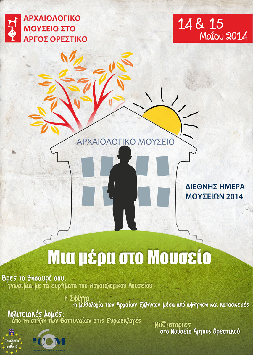 Mε ένα διήμερο πρόγραμμα εκδηλώσεων στις 14 και 15 Μαΐου η ΚΘ΄ Εφορεία Προϊστορικών και Κλασικών Αρχαιοτήτων και η Διεύθυνση Πρωτοβάθμιας Εκπαίδευσης Καστοριάς συν-εορτάζουν τη Διεθνή Ημέρα Μουσείων 2014 στο Αρχαιολογικό Μουσείο της Περιφερειακής Ενότητας Καστοριάς, στο Άργος Ορεστικό.