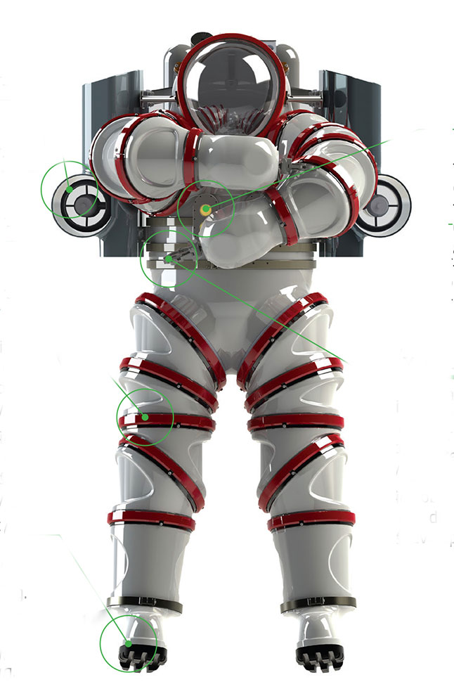Ο εξωσκελετός, κόστους 1,5 εκατ. δολαρίων, είναι φτιαγμένος από κράμα αλουμινίου και επιτρέπει στον δύτη που τον φορά να κινεί ελεύθερα τα χέρια και τα πόδια του. Οι προωθητήρες είναι οριζόντιοι και κάθετοι, επιτρέποντας έτσι στον δύτη (ανάλογα με το ποιος προωθητήρας ενεργοποιείται) να κινείται προς κάθε κατεύθυνση. Ο έλεγχος των προωθητήρων γίνεται με πεντάλ ποδιών, που βρίσκονται μέσα στη ρομποτική στολή.