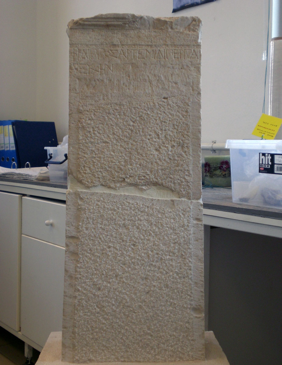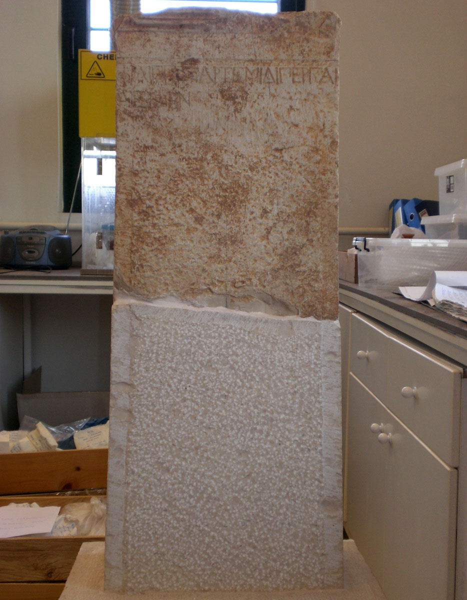 Η στήλη είναι κατασκευασμένη από ασβεστόλιθο και χρονολογείται στο β’ μισό του 4ου αι. π.Χ. Συντηρήθηκε στα εργαστήρια συντήρησης του Αρχαιολογικού Μουσείου Άρτας και σήμερα εκτίθεται στην Αίθουσα Α του μουσείου.