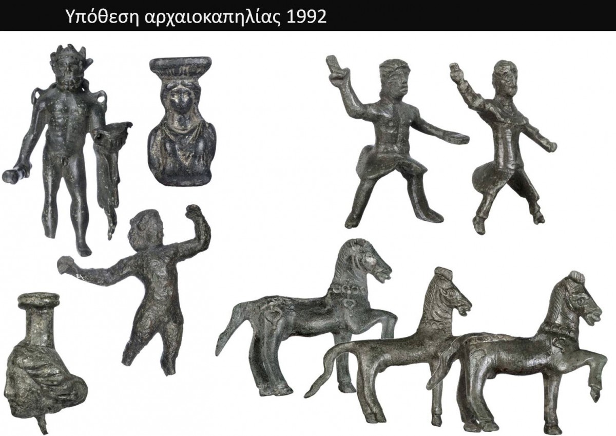 Στις 5 Φεβρουαρίου 1992 σημειώνεται μία μεγάλης εμβέλειας υπόθεση αρχαιοκαπηλίας, εμπορίας, παράνομης διακίνησης και εξαγωγής αρχαιοτήτων. Στα χέρια των τριών δραστών που συνελήφθησαν στο Λιμάνι Εξωτερικού της Ηγουμενίτσας κατασχέθηκαν 3.420 αντικείμενα που προορίζονταν για παράνομη εξαγωγή μέσω της Αγκώνας της Ιταλίας. Αυτά είχαν συσκευαστεί επιμελώς σε δέματα και είχαν τοποθετηθεί σε κρύπτες στις θύρες και κάτω από τα καθίσματα του αυτοκινήτου των δραστών. Οι δράστες, κάτοικοι Θεσσαλίας και Μακεδονίας, φαίνεται ότι ήταν μέλη μίας οργανωμένης σπείρας αρχαιοκαπήλων που δρούσε όχι μόνο στις περιοχές αυτές, αλλά και σε άλλα μέρη της Ελλάδας, όπως τις Κυκλάδες και τη Στερεά Ελλάδα.