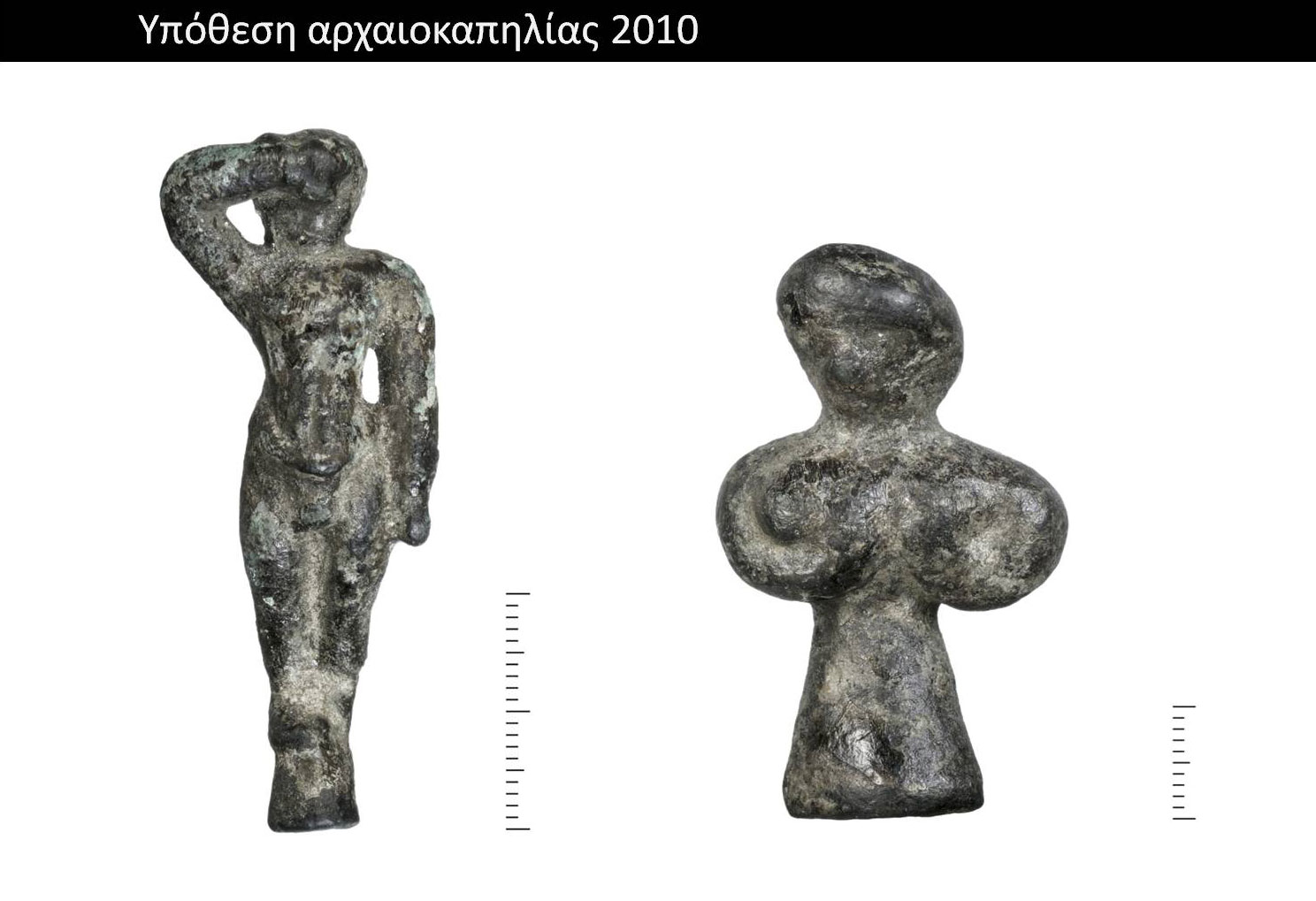 Πέντε χρόνια αργότερα, στις 8 Απριλίου 2010, κατασχέθηκαν από τις διωκτικές αρχές της Ηγουμενίτσας δύο χάλκινα μινωικά ειδώλια, αμέσως μετά την αγοραπωλησία έναντι του τιμήματος των 20.000 ευρώ. Η συναλλαγή έλαβε χώρα στην πλατεία Δημαρχείου Ηγουμενίτσας. Εδώ είχε κανονιστεί η συνάντηση με τον υποψήφιο αγοραστή, μετά τις αποτυχημένες προσπάθειες του κατόχου των αντικειμένων, κατοίκου Κέρκυρας, να τα πουλήσει εκεί. Η αστυνομία, ωστόσο, που παρακολουθούσε από καιρό τις κινήσεις του, του είχε στήσει παγίδα, καθώς ο αγοραστής ήταν μυστικός αστυνομικός της Υποδιεύθυνσης Ασφαλείας Ηγουμενίτσας. Κατά τη σύλληψή του ο δράστης αρνήθηκε κάθε πληροφορία και επικαλέστηκε ότι τα αγαλματίδια είχαν φθάσει στον ίδιο τυχαία. Η αστυνομία δεν απέκλεισε τότε το ενδεχόμενο να υπάρχει κύκλωμα, το οποίο διοχετεύει αρχαία σε διάφορες πόλεις της Ελλάδας και χρησιμοποιεί ντόπιους για την πώλησή τους.
