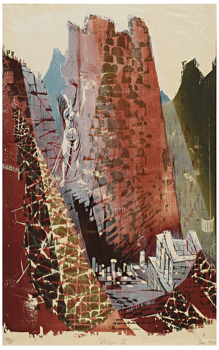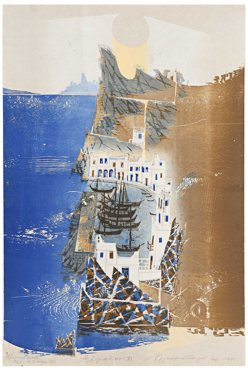 »Ως χαράκτης δούλεψε καινοτομικά δημιουργώντας ένα νέο δρόμο ιδιότυπης απόδοσης της οπτικής πραγματικότητας, ιδιαίτερα στα τοπία του. Εκείνο που πρωταρχικά τον ενδιέφερε ήταν να κατακτήσει μια άλλη εικόνα της Ελλάδος, περισσότερο ποιητική, με έμφαση στη λεπτή χρωματική διατύπωση. Έτσι, από τη σειρά των έγχρωμων ξυλογραφιών, κυρίως σε πλάγιο ξύλο, από το Αιγαίο έως την Ολυμπία και από τους Δελφούς έως την Αττική, παρατηρούμε ότι, μέσω των μεγάλων διαστάσεων, ευρηματικά αξιοποιεί τα λευκά τυπώματα, κερδίζοντας μια απρόσμενη φωταύγεια …