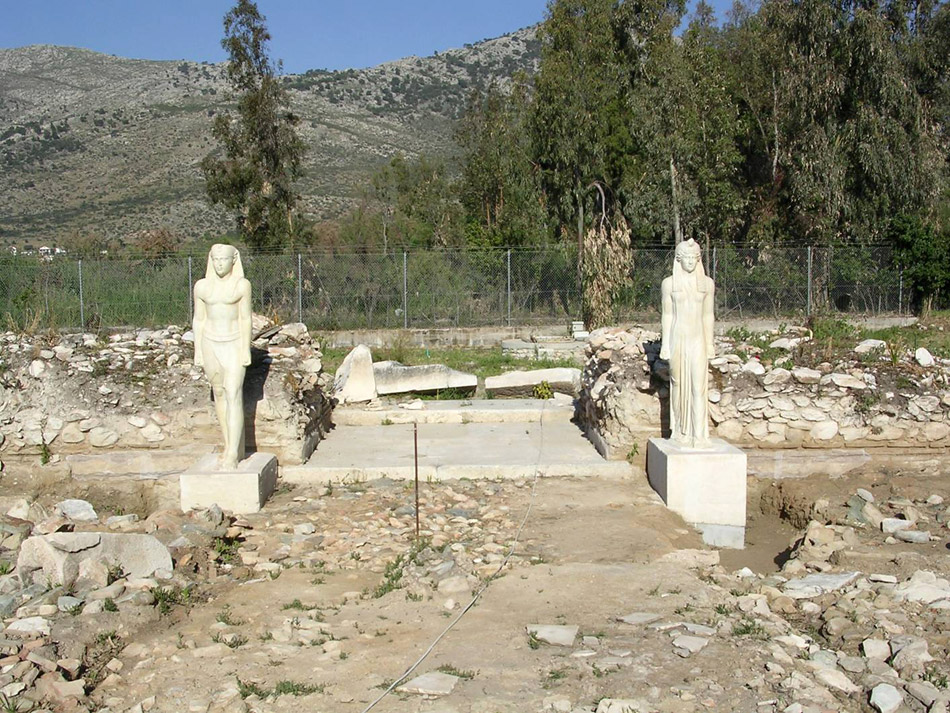 Το Ιερό των Αιγυπτίων Θεών ιδρύθηκε περί το 160 μ.Χ. στη νότια πλευρά του κάμπου του Μαραθώνα, στο Μικρό Έλος, από τον Ηρώδη Αττικό, πιθανότατα εντός των ορίων του κτήματός του. Οι αρχαιότητες είχαν επισημανθεί από περιηγητές του 18ου αιώνα, οι οποίοι ανέφεραν τη θέση με το όνομα Νησί, καθώς βρίσκονταν πάνω σε νησίδα στο κέντρο έλους, όπου υπήρχε και συγκρότημα λουτρών. Πηγή έμπνευσης για την ίδρυσή του από τον Ηρώδη ήταν πιθανότατα το Σαραπείο, που είχε αναγερθεί σε τεχνητή νησίδα από τον αυτοκράτορα Αδριανό στην έπαυλή του στο Τίβολι, έξω από τη Ρώμη, ο οποίος, με τη σειρά του, είχε αντιγράψει το Σαραπείο στην πόλη Κάνωπο, στο Δέλτα του Νείλου.