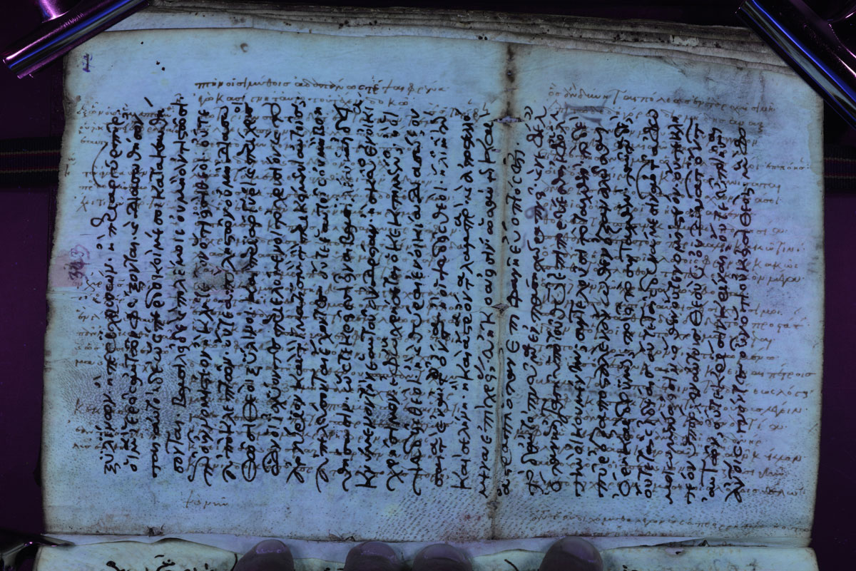Α.Τ.: Ακριβώς. Κι αυτός που εμπορευόταν αυτή την περγαμηνή μπορεί να μην ήξερε καν να διαβάσει τι έχει από κάτω. Και βλέπετε περγαμηνή που έχει Ευαγγέλιο από κάτω και επάνω στο Ευαγγέλιο να γράφεται ένα αρχαίο ελληνικό κείμενο, και το ανάποδο. Πολύ απλά. Βέβαια το ζητούμενο είναι τι καινούργιο μπορούμε να ανακαλύψουμε στο αποκάτω κείμενο. Και έτσι ακριβώς έγινε και με το περίφημο παλίμψηστο του Αρχιμήδη, το οποίο ήταν γνωστό βεβαίως ότι υπήρχε, άλλο τώρα εάν οι ιστορικές συγκυρίες το έφεραν από την Κωνσταντινούπολη, που ήταν στη Βιβλιοθήκη του Μετοχίου του Παναγίου Τάφου των Ιεροσολύμων, να καταλήξει στην Αμερική – και οι τεχνικοί κυρίως και όχι τόσο οι φιλόλογοι να το κάνουν σημαία τεχνολογική, τη στιγμή που κάνα-δυο χρόνια πριν εμείς είχαμε μπει ήδη σ’ αυτή την τεχνολογία. Απλώς το θέμα ήταν ποιος κάνει καλύτερες δημόσιες σχέσεις, ποιος αυτοπροβάλλεται.