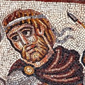 Το πρώτο ψηφιδωτό σε αρχαία συναγωγή που απεικονίζει ένα μη βιβλικό θέμα ήρθε στο φως σε μια συναγωγή του 5ου αιώνα, στο χωριό Huqoq, στην Κάτω Γαλιλαία του Ισραήλ. Πρόκειται για το τρίτο ψηφιδωτό που αποκαλύπτεται στην ίδια θέση από το 2012, κατά τη διάρκεια ανασκαφών που διευθύνει η Jodi Magness, καθηγήτρια του Πανεπιστημίου της Βόρειας Καρολίνας (UNC), σε συνεργασία με τη Shua Kisilevitz της Αρχής Αρχαιοτήτων του Ισραήλ.