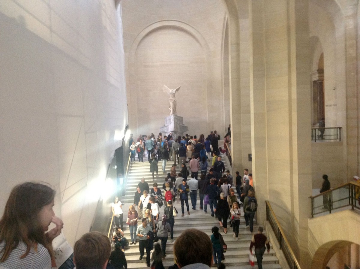 Την παρουσίαση του αγάλματος της Νίκης της Σαμοθράκης (το οποίο επανατοποθετήθηκε στο βάθρο του στο Μουσείο έπειτα από δέκα μήνες «απουσίας» λόγω εργασιών συντήρησης) στην ελληνική αποστολή ανέλαβε ο Ludovic Laugier, ερευνητής του τμήματος Ελληνικών και Ρωμαϊκών Αρχαιοτήτων. Ο ίδιος ανέλαβε και την ξενάγηση της αποστολής στο χώρο συντήρησης του αγάλματος έπειτα από ειδική άδεια πρόσβασης που δόθηκε για τους μαθητές.