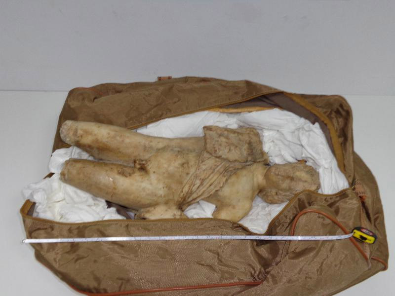 Στην οικία ενός 70χρονου συλληφθέντα βρέθηκε και κατασχέθηκε, μεταξύ άλλων, μεγάλος αριθμός αρχαίων αντικειμένων, μεταξύ των οποίων το προαναφερόμενο εξαιρετικά σπάνιο μαρμάρινο άγαλμα της ελληνορωμαϊκής περιόδου (1ος αιώνας π.Χ.), του γλύπτη της αρχαιότητος Πραξιτέλη, με προέλευση από την Αρκαδία, σωζομένου ύψους 0,65 μ. (δεν σώζονται τα κάτω άκρα από το ύψος των γονάτων).