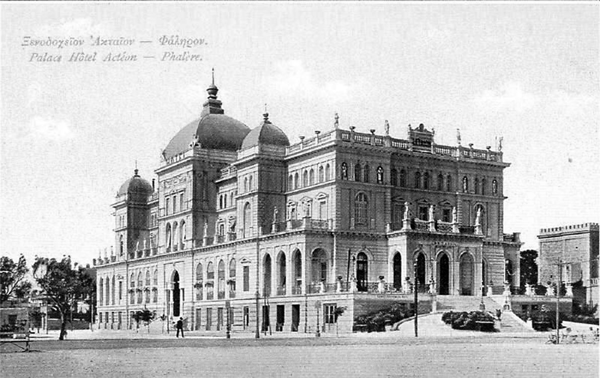 »Το 1882 τελείωσε ο σταθμός στον Πειραιά και φτιάχτηκαν πρόχειροι σταθμοί στο Φάληρο και το Μοσχάτο. Η περιοχή άρχισε να αναπτύσσεται. Ο κόσμος άρχισε επιτέλους να κατεβαίνει στο Φάληρο. Φτιάχτηκαν καμπίνες για τους λουόμενους και μια μεγάλη εξέδρα. Η πρώτη κοσμική ακτή της παλιάς Αθήνας είχε γεννηθεί. Βίλες άρχισαν να ξεφυτρώνουν και μαζί με αυτές, το μεγάλο ξενοδοχείο του σταθμού “Γκραντ Οτέλ” (1885). Ευτύχησε την περίοδο της ακμής του (1912) να διαθέτει 200 δωμάτια κι ένα ζαχαροπλαστείο με ορχήστρα, που τραβούσε σαν μαγνήτης την αθηναϊκή και την πειραιώτικη αριστοκρατία.