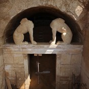Συνεχίζονται (24.08.2014) οι ανασκαφικές εργασίες στον Τύμβο Καστά της Αμφίπολης, από την ΚΗ΄ Εφορεία Προϊστορικών και Κλασικών Αρχαιοτήτων, για την αποκάλυψη του ταφικού μνημείου. Αφαιρέθηκαν ακόμη δέκα λιθόπλινθοι, που αποτελούσαν την έβδομη και όγδοη σειρά, στον τοίχο σφράγισης. Απομένουν τρεις σειρές προς αποδόμηση του συνόλου των έντεκα δόμων. Έτσι, αποκαλύφθηκε η συνέχεια της πρόσοψης της εισόδου του μνημείου, με διάκοσμο όμοιο με αυτόν των πλαϊνών τοίχων. Δηλαδή, νωπογραφία λευκού χρώματος, εξαιρετικά επιμελημένη, που μιμείται τον μαρμάρινο περίβολο.