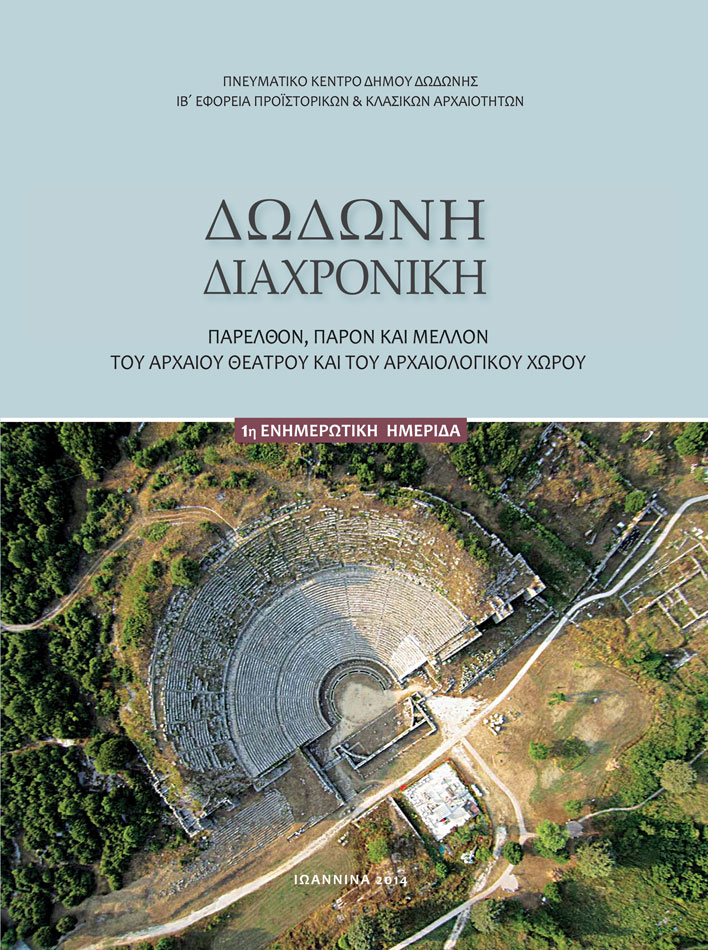 Τα Πρακτικά της 1ης Ενημερωτικής Ημερίδας με τίτλο «Δωδώνη Διαχρονική: Παρελθόν, Παρόν και Μέλλον του Αρχαίου Θεάτρου και του Αρχαιολογικού Χώρου» που διοργανώθηκε στις 8 Μαρτίου 2014 στα Ιωάννινα, από το Πνευματικό Κέντρο του Δήμου Δωδώνης, σε συνεργασία με την Εταιρεία Ηπειρωτικών Μελετών και υπό την αιγίδα της ΙΒ’ Εφορείας Προϊστορικών και Κλασικών Αρχαιοτήτων.
