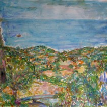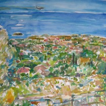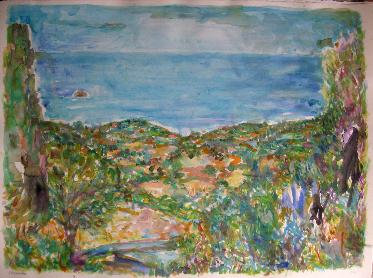 Με το βλέμμα του αμετακίνητο προς το ίδιο τοπίο –που ανεπαίσθητα αλλοιωνόταν μέσα στα χρόνια– ο Γιάννης Ψυχοπαίδης γεννούσε κάθε Αύγουστο μια σειρά ζωγραφικές εικόνες εκ του φυσικού, απλές και άμεσες. Ο ζωγραφικός διάλογος με το ίδιο πάντα τοπίο έγινε μια εμμονή και μια συνήθεια, που επανερχόταν σταθερά τα τελευταία 15 χρόνια, μόνο τον Αύγουστο, μόνο εκεί και μόνο από το ίδιο πάντα σημείο.