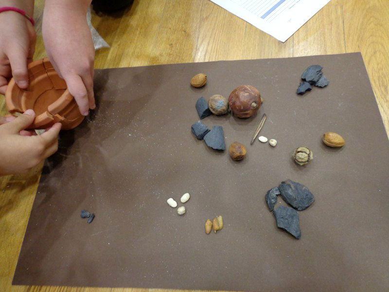 Τα παιδιά έρχονται σε επαφή με τη διαδικασία της ανασκαφής. Στην αρχή γίνεται μια συζήτηση γενικά για την αρχαιολογία, μετά κάνουν ένα θεατρικό παιχνίδι για τη στρωματογραφία (με τη βοήθεια υφασμάτων), μαθαίνουν για τη διαδοχική επικάλυψη των διάφορων κατασκευών του ανθρώπου και στη συνέχεια ξεκινούν τις δικές τους ανασκαφές. Κάθε παιδί έχει το δικό του ρόλο: άλλος φωτογραφίζει, άλλος κοσκινίζει, άλλος έχει το φτυάρι…