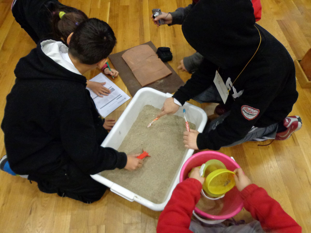 Η ιδιότυπη ανασκαφή προ(σ)καλούσε τους μικρούς αρχαιολόγους να ψάξουν μέσα σε πλαστικές λεκάνες με άμμο και να ανακαλύψουν τα ευρήματα (όπως πέτρες), που παραπέμπουν σε αρχαιολογικούς χώρους και μνημεία της περιοχής τους.