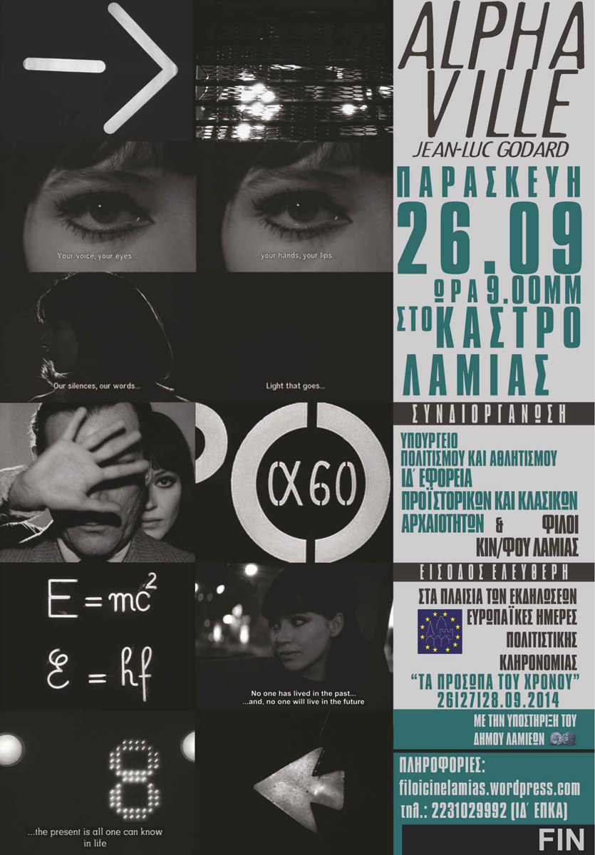 Την Παρασκευή 26 Σεπτεμβρίου στο Αρχαιολογικό Μουσείο Λαμίας θα πραγματοποιηθούν θεματικές ξεναγήσεις στην περιοδική έκθεση αρχαιολογικών ευρημάτων από τη Φθιώτιδα, σχετικών με τη μέτρηση του χρόνου (ηλιακό ρολόι από την Στυλίδα και αγγείο με παράσταση αστερισμών από τον Άγιο Ιωάννη Θεολόγο Λοκρίδας) για σχολικές ομάδες (9.00-13.00). Το ίδιο βράδυ, στις 21.00, θα προβληθεί η ταινία «Άλφαβιλ» του Ζαν-Λυκ Γκοντάρ.