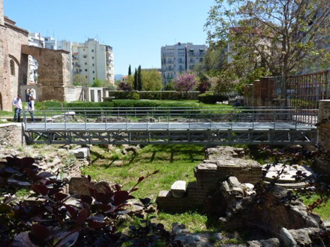 – Σχεδιάστηκε και υλοποιήθηκε πεζογέφυρα, μήκους 15,5 μ. περίπου, σύνδεσης του πεζοδρομίου με τη λεγόμενη «Αυτοκρατορική» είσοδο, η οποία είναι προέκταση του άξονα που ξεκινά από το Γαλεριανό συγκρότημα της πλατείας Ναυαρίνου, περνά από την Καμάρα και καταλήγει στη Ροτόντα. Ολοκληρώθηκε νέο κλιμακοστάσιο εντός του Μνημείου και εγκαταστάθηκε εσωτερικό αναβατόριο. Αυτό έχει ως αποτέλεσμα τη διευκόλυνση ατόμων με κινητικά προβλήματα.
