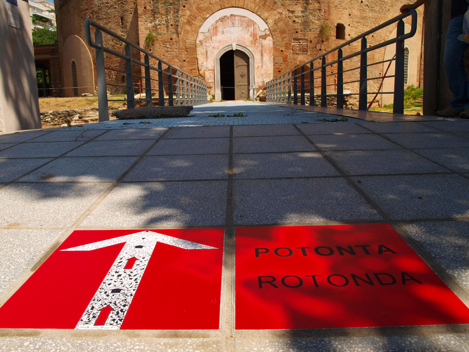 – Δημιουργήθηκε ψηφιακό μοντέλο του Μνημείου και στη συνέχεια, σε κατάλληλη κλίμακα, μεταλλικό απτικό μοντέλο, το οποίο επιστρώθηκε με κατάλληλο υλικό για διευκόλυνση της αφής και εγκαταστάθηκε στην είσοδο της νέας πρόσβασης. Σε ό,τι αφορά στο απτικό μοντέλο της Ροτόντας υπάρχει η δυνατότητα, να δοθούν γι’ αυτό πληροφορίες, στον τυφλό επισκέπτη, μέσω ειδικά σχεδιασμένης ηχητικής «περιήγησης δακτύλου» η οποία είναι, επίσης, προσπελάσιμη μέσω του WiFi του Μνημείου.  Με αυτόν τον τρόπο διευκολύνονται οι επισκέπτες με προβλήματα όρασης.