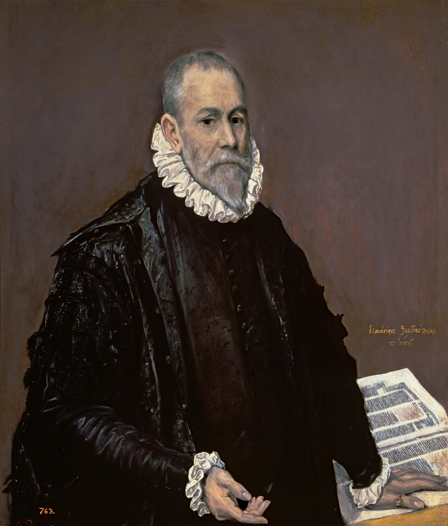 Η έκθεση περιλαμβάνει δύο από τις σημαντικότερες προσωπογραφίες που φιλοτέχνησε ο καλλιτέχνης (από τις συλλογές του Museo del Prado), καθώς και άλλα ζωγραφικά έργα, σπάνια βιβλία, χειρόγραφα και χαρακτικά του 16ου και του 17ου αιώνα που φυλάσσονται στην Εθνική Βιβλιοθήκη της Ισπανίας, στα Αρχεία του Τολέδου (Archivo Municipal de Toledo, Archivo Provincial de Toledo, Biblioteca de Castilla-La Mancha), και σε άλλα ιδρύματα (Museo del Greco, Archivo Historico de Protocolos de Madrid) που πρόθυμα δέχτηκαν να δανείσουν τους θησαυρούς τους.