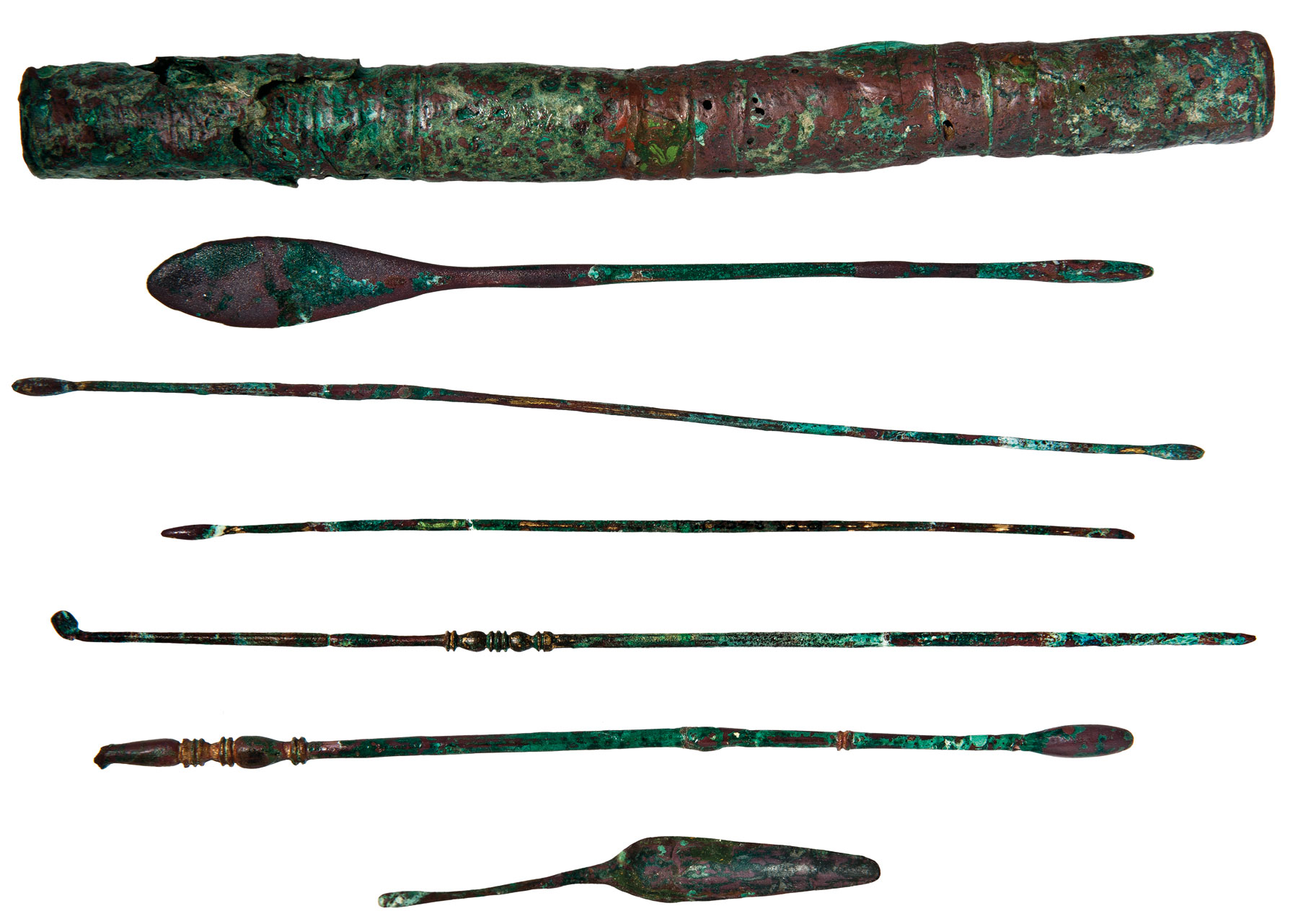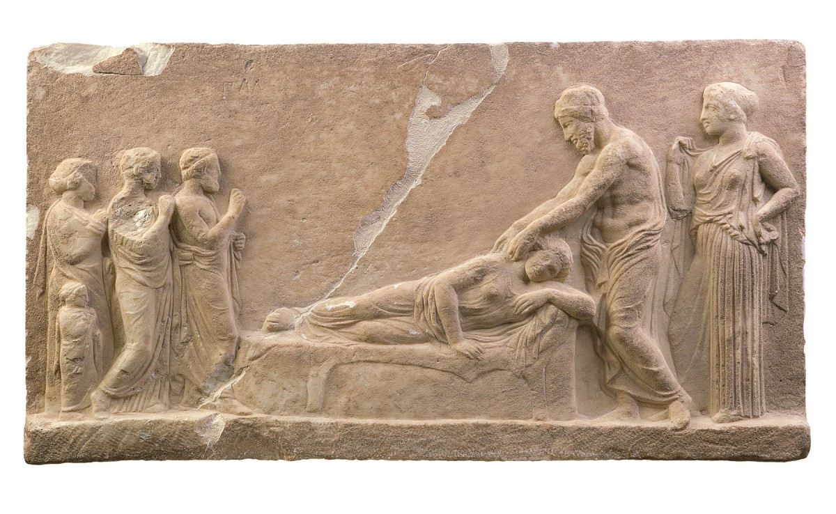 – Ομηρική ιατρική: Αφετηρία αποτελούν τα Ομηρικά έπη, που παρέχουν τις πρωιμότερες μαρτυρίες για τις μεθόδους αντιμετώπισης και περιποίησης των πολεμικών τραυμάτων με διάφορα φυτικά φάρμακα και επιδέσεις. Παρουσιάζονται δύο πήλινες πινακίδες της Γραμμικής Β στις οποίες βρίσκονται καταγεγραμμένες οι λέξεις i-ja-te (ιητήρ) και pa-ma-ko (φάρμακο), καθώς επίσης αγγεία και μαρμάρινα και πήλινα ανάγλυφα όπου απεικονίζονται σκηνές περιποίησης των τραυματισμένων ομηρικών ηρώων.